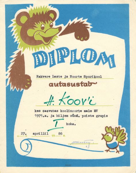 "Punane Täht" 21.04.1987 artiklis on juttu maleturniirist "Rakvere 87", kus mul õnnestus saada C-grupis esimene koht. See oli viimane kord, kus ma tõesti males tubli olin. Minu klassivend sai teise koha. Meie eesti keele õpetaja Epp Nõmmik ütles selle kohta, et me oleme nagu Ehlvest ja Oll. See oli meile suur tunnustus.