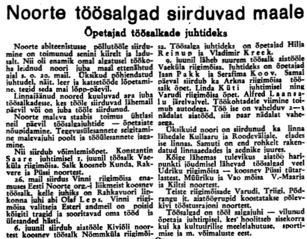 Ajalehes "Virumaa Teataja" 1.06.1943 on juttu noorte abiteenistusse-põllutöödele minekust. Vaeküla riigimõisa läheb aiatööle suurem töösalk, mille juhtideks on Jaan Pakk ja Serafima Koov.