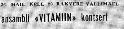 Üks väheseid vabaõhukontserte, mida ma olen käinud vaatamas, oli ansambli "Vitamiin" esinemine 26. mail 1989 Rakvere Vallimäel. Ürituse eelteade avaldati ajalehes "Viru Sõna" 25.05.1989. Kas peale vaheaega esineti edasi nime all "Monarh"?