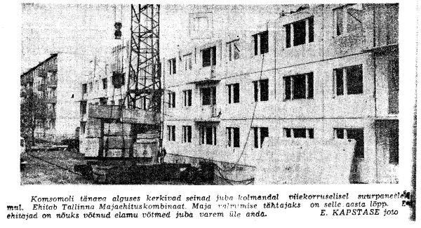 Ajalehes "Punane Täht" 16.10.1971 on foto Rakveres Komsomoli (praegune Laada) tänavale viiekordse maja ehitamisest. Ema ja isa mälestuste põhjal kolis meie pere Komsomoli tänav 8 üsna varsti peale minu sündimist, seega kuskil detsembri algusel. Seejuures me kolisime just äsja valminud majja. Ma järeldan, et selleks majaks oli siin fotol vasakule jääv maja. Vaevalt, et ehitatav maja nii ruttu valmis sai. Kuna minu vanemad olid Rakvere "Normas" tublid töölised, siis neile anti töökohast korter.