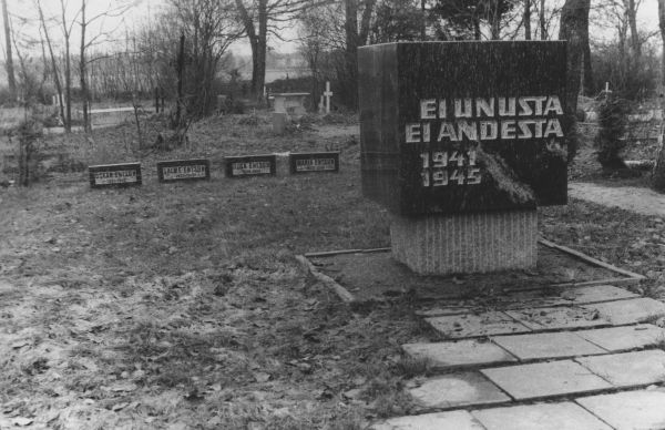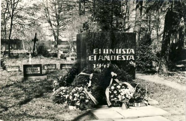 Arvatavasti pandi esimene hauatähis juba 25. aprillil 1945, kui toimus siis esimene matmine. Millal avati kivist mälestuskivi?