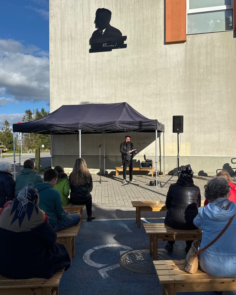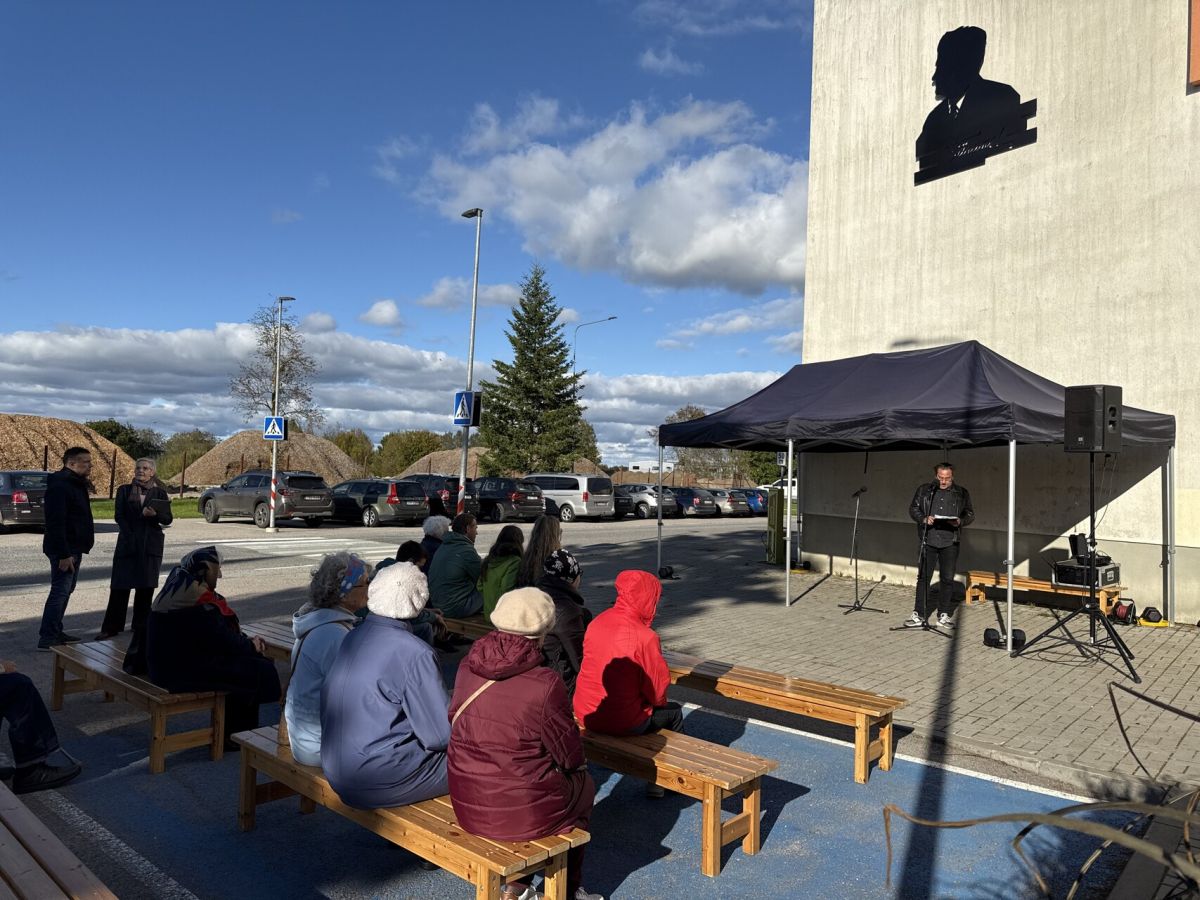 Bareljeef avati Kadrina spordikeskuse fassaadil 28. septembril 2025.