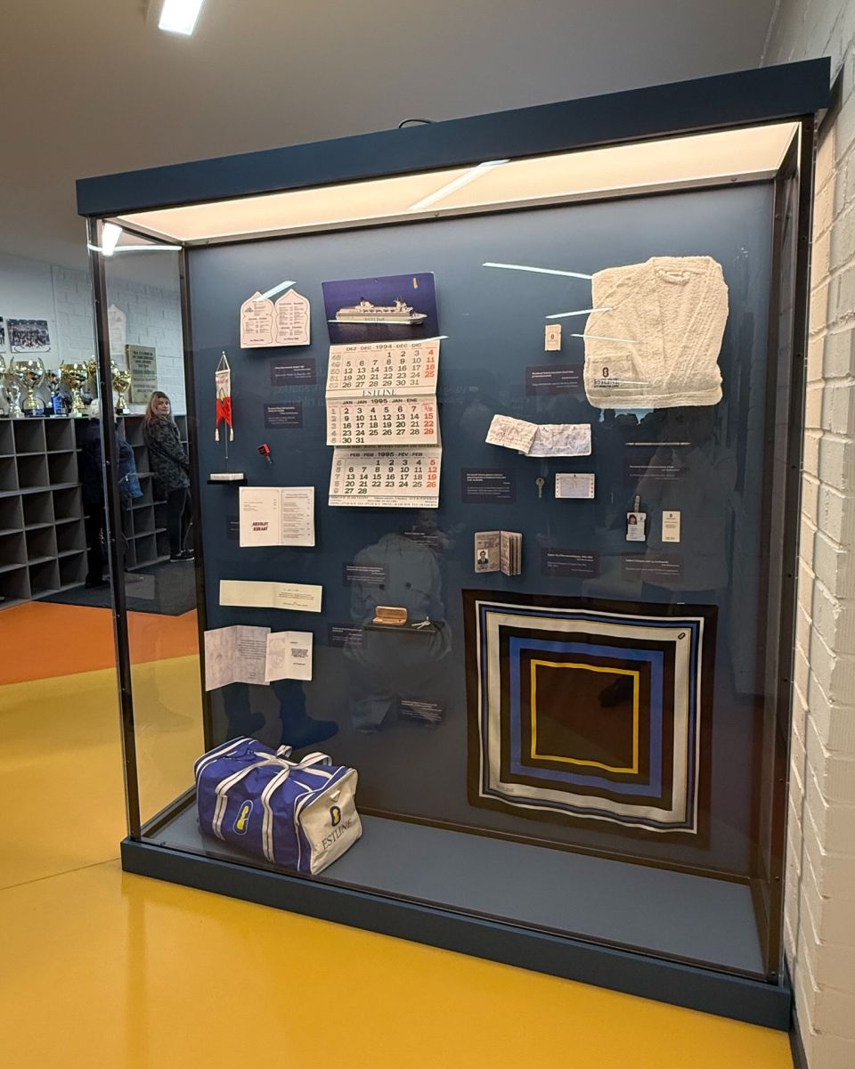 Pärast pidulikku mälestusbareljeefi avamist sai spordihoones tutvuda Eesti Meremuuseumi ja MTÜ Memento Mare koostöös sündinud näituse "Estonia – ühe laeva lugu" rändamiseks kohandatud versiooniga, mis jutustab laeva loo alates ehitusest, omanikest, sisustusest ja eluolust. Näituse kuraatorid on Teele Saar ja Urmas Dresen.
