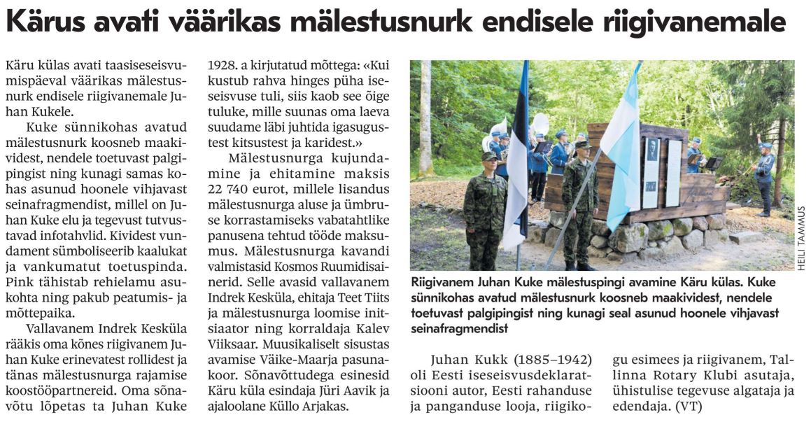 - 17.04.2015 - Juhan Kuke 130. sünniaastapäeva tähistatakse Kärus ja Väike-Maarjas.