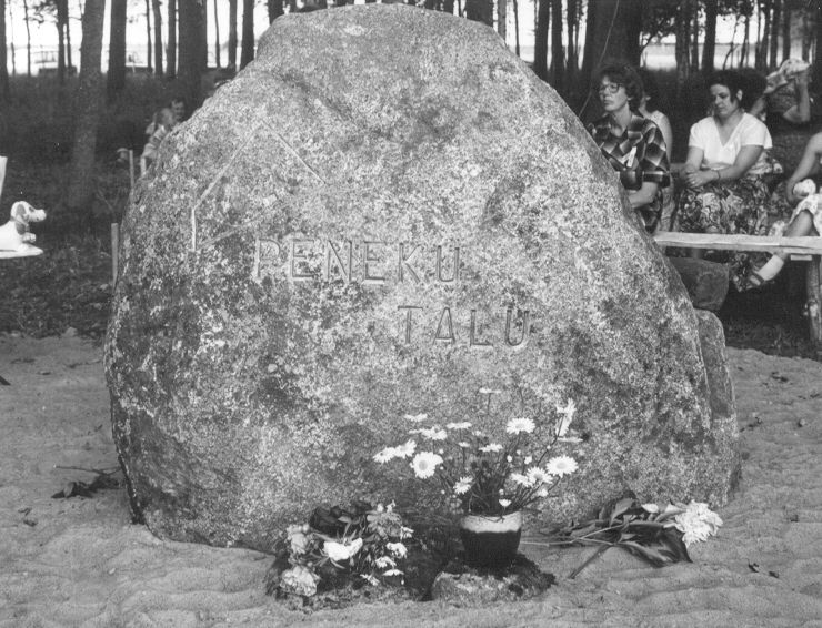 Ühine mälestuskivi hävinud külale ja Peneku (Abaaed) talule avati esimesel koduküla kokkutulekul 24. juunil 1989.