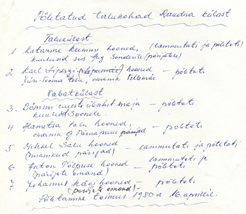 - Raudna küla lammutati 1970-ndate lõpus olümpiatee eest.