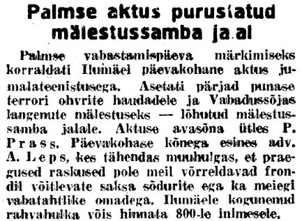 "Virumaa Teataja" 16.06.1942 on ülevaade 500 inimese osavõtul toimunud põllumeestepäevast Võhmas. Ürituse käigus toimus raha kogumine kommunistide poolt Ilumäe kabeli juures mahakistud Vabadussõja mälestussamba uuesti ülesehitamiseks. Koguti korralik summa kommunistide hävitustöö jälgede silumiseks. Einelaua sissetuleku puhastulu anti samuti mälestussamba ülesehitamise fondi.