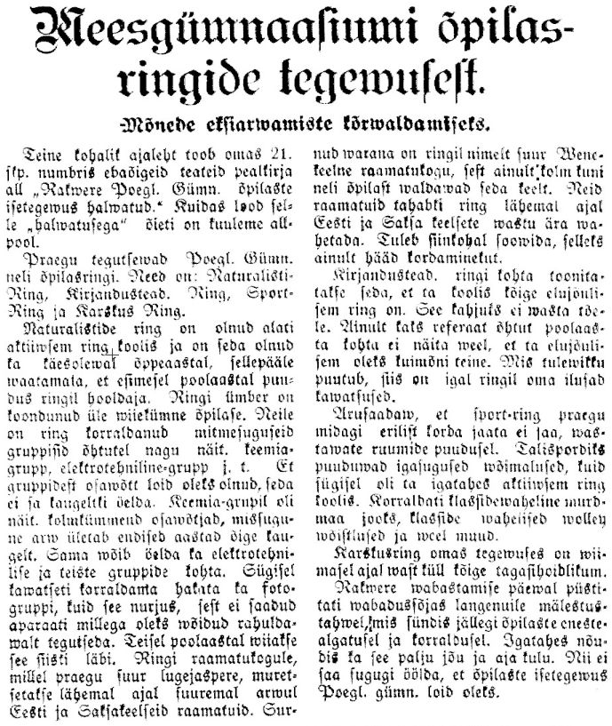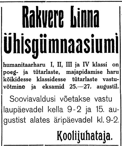 - 14.02.2019 - Rakvere koolivõrgust 1929ndal aastal.