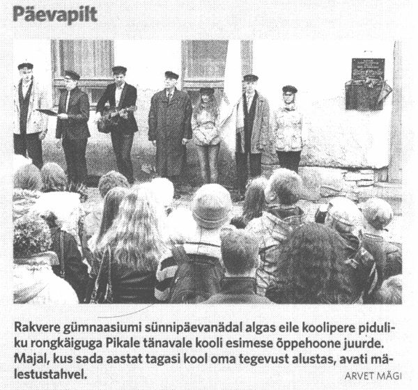 - 4.10.2011 - Rakvere gümnaasium alustab oma juubeliaastat, sest täpselt aasta pärast saab kooli asutamisest sada aastat. Ühtlasin möödub siis ka 100 aastat gümnaasiumihariduse andmisest maakonnas. Kuigi kool alustas tegevust 1. septembril 1912, siis kooli pidulik õnnistamine toimus kuu aega hiljem. Traditsiooniliselt tähistabki kool aastapäevi just oktoobri algusel. Tuleva aasta 6. oktoobril toimubki juubeliaasta suur vilistlaste pidu. Ettevõtmisi jagub tervesse aastasse.