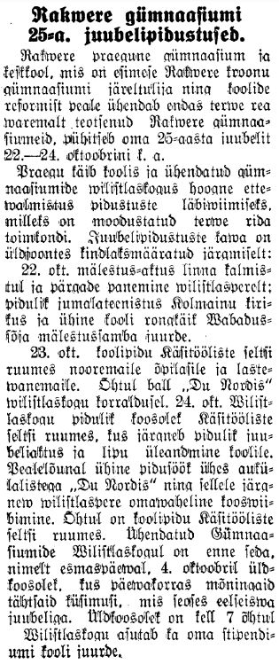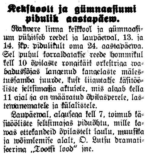 Kooli 85. juubel artikkel ajalehes "Õpetajate Leht" 10.10.1997 (kooli ajaloost, tuntumad vilistlased, meenutused, ürituste ajakava).