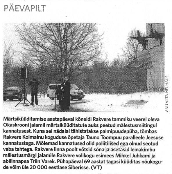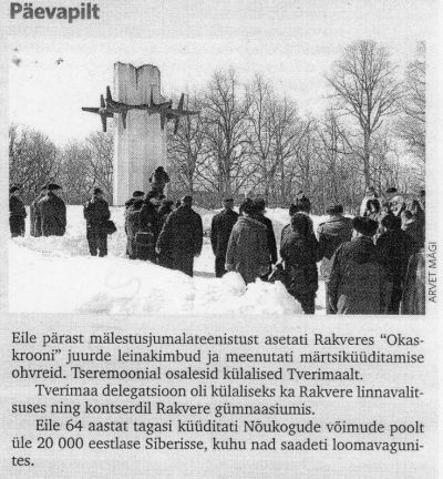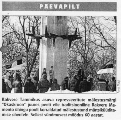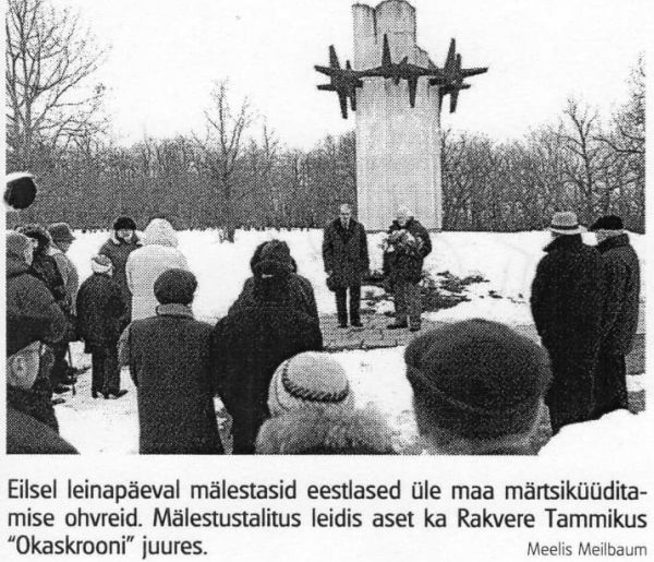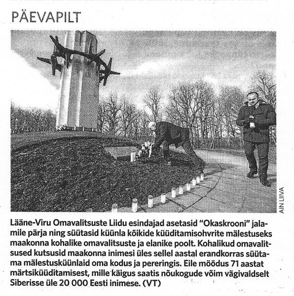 - "Viru Sõna" 21.12.1991 - 24. detsembril süüdatakse Okaskrooni juures mälestusküünlad küüditatute mälestuseks.