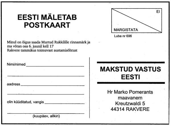 - 17.05.2001 - eelteade 6. juunil toimuvale üritusele ja üleskutse täita ankeet.