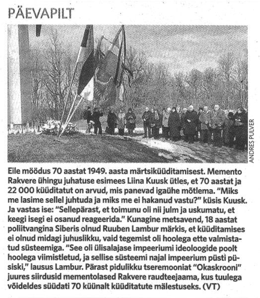 14. juunil 1941 ja 25. märtsil 1949 toimunud küüditamistest on juttu mitmetes ajalehtedes: