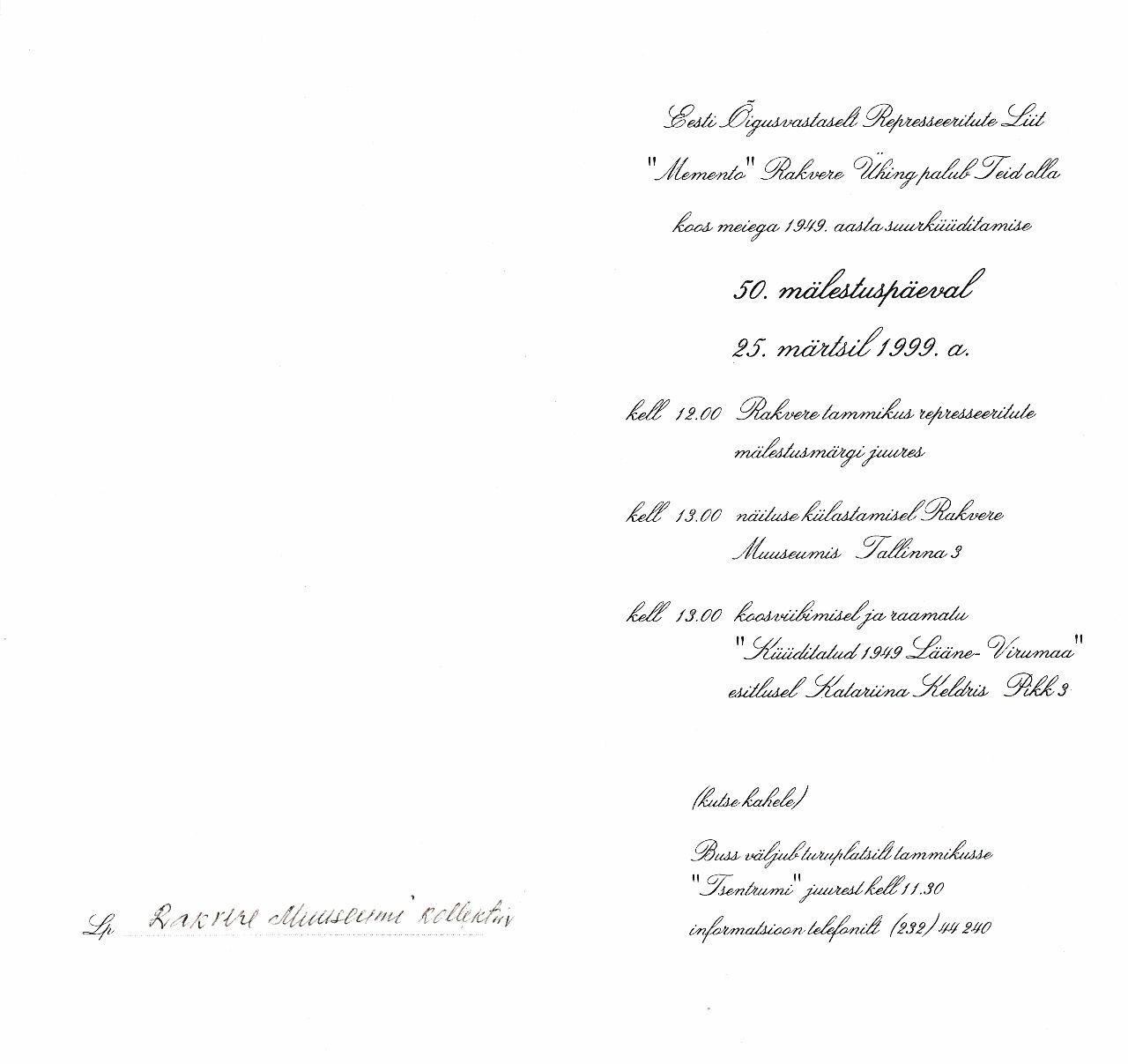 Kutse 1949. a. suurküüditamise 50.mälestuspäevale, RM _ 6426 Ar1 1565:2, Virumaa Muuseumid SA, http://www.muis.ee/museaalview/3039901.