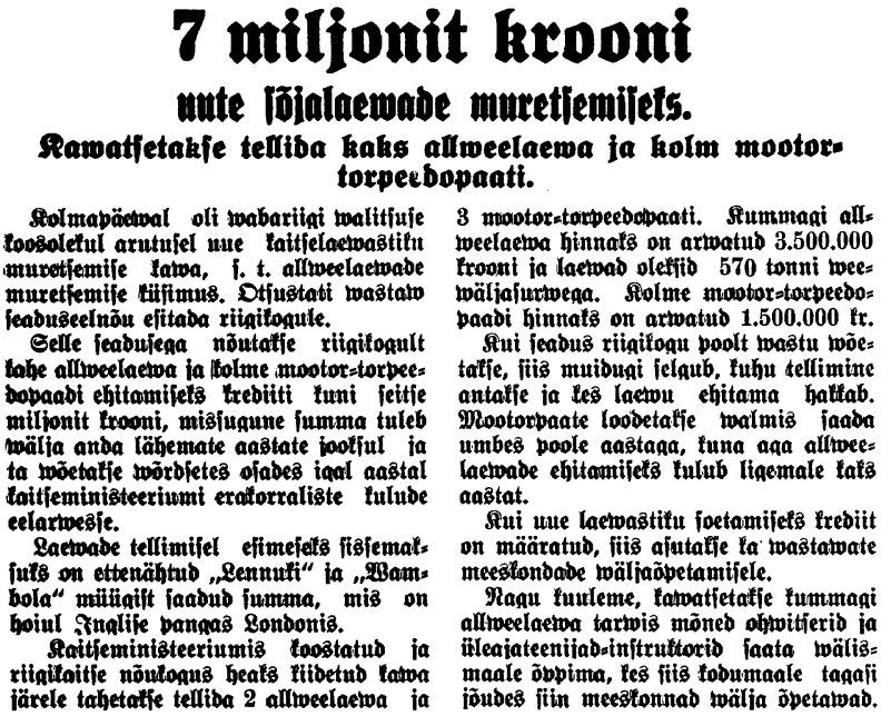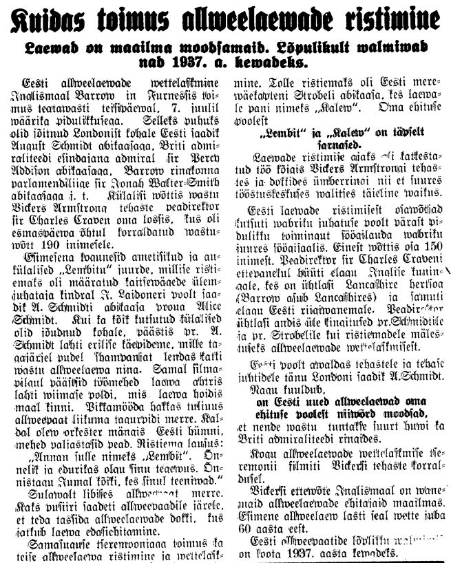 Ajaleheartiklid seoses allveelaevade valmimisega.