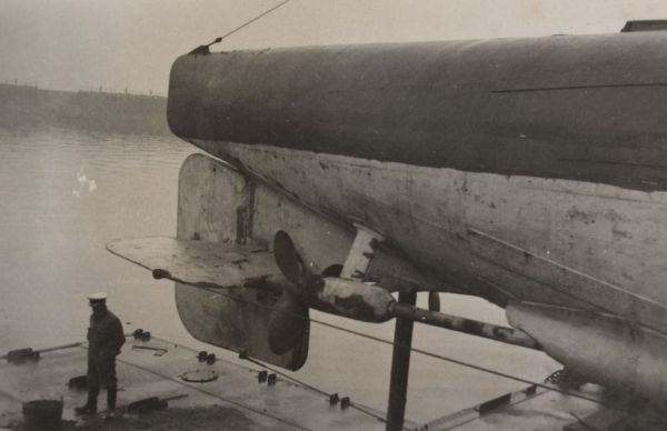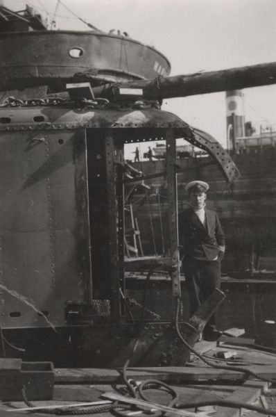 Allveelaev "Kalev" dokis, ees seisab Verner Puurand, MM F 2991, Eesti Meremuuseum, http://www.muis.ee/museaalview/132069.