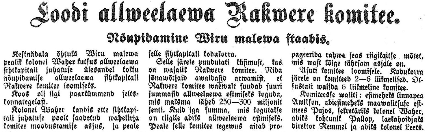 Monumendi saamislugu ajalehe "Virumaa Teataja" artiklite põhjal: