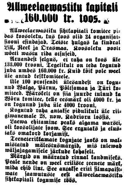 - 5000 Austraalia dollariga lubas mälestusmärgi rajamist toetada legendaarse kapteni poeg Hans Verner Puurand.???