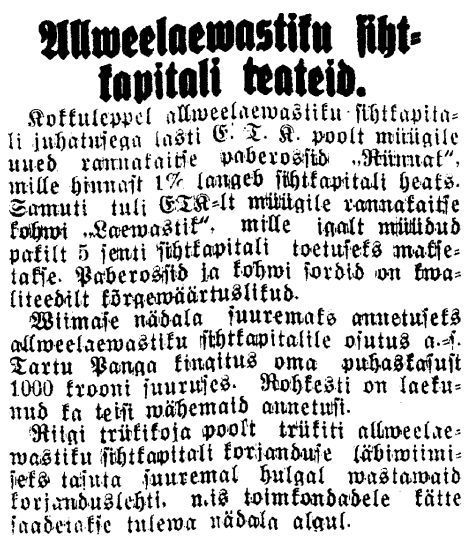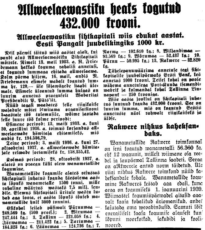 - Esimene suurem summa (15000 krooni) koguti heategevuslikul üritusel aastal 2006 korjanduse abil.