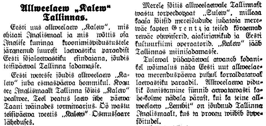 Allveelaevast Kalev on juttu veebilehel http://et.wikipedia.org/wiki/Kalev_%28allveelaev%29.