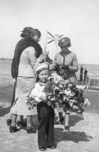 Kapteni poeg Hans Verner Puurand allveelaeva Kalev saabumise päeval Tallinnas. Erakogu.