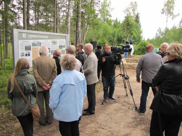 31.10.2013 - ülevaade seni tehtud töödest (ümbrus paljuski korrastatud, mälestusmärgi põhiosa on paigas ja betooni valatud) ja järgnevatest töödest (reeling kujundatakse kevadel, lisatakse maakividest mõtteline osa allveelaevast, haljastamine ja siltide paigaldamine). Maa kuulub vallale. Lüidalt on juttu ka rahastamisest. Tänavuseks on tööd lõppenud ja raha on ka otsas. Töödega loodetakse valmis jõuda järgmiseks suveks, kui Eestise tuleb Verner Puuranna poeg. Foto.