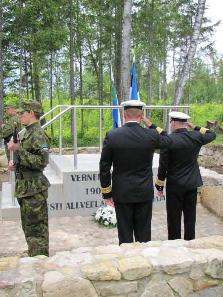 Mereväeohvitserid ..... ja .... asetasid monumendi juurde lillekimbu.