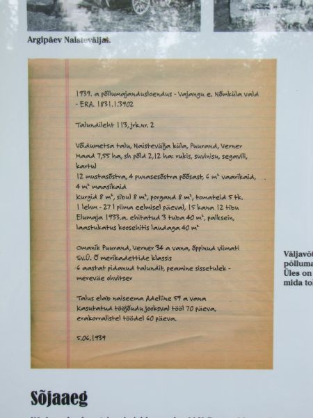 12.09.2006 (http://www.virumaateataja.ee/2291179/vanavara-paasteti-varaste-kaest), kus Tamsalu Muuseumisõprade Seltsi juhatuse esimees Aadu Uudmäe ütleb sellised mõtted: "Naistevälja külas on elanud sõjaajaloolastele hästi tuntud mees - allveelaeva Kalev komandör kaptenmajor Verner Puurand. Kogenud mereväeohvitser oli pärast sõda ka USA armee teenistuses, tegeldes USA sõjaväevalitsuse juures eestlastest sõjavangide vabastamisega. Ta organiseeris endistest eesti sõjavangidest USA armee juurde vahi- ja pioneeripataljonid. Tamsalu vald plaanib Verner Puurannale püstitada Naisteväljale mälestustahvli."