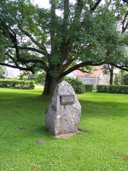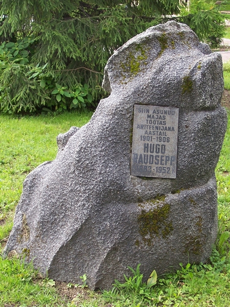 Hugo Raudsepa mälestuskivi tema sünnikohas, Vaimastvere mõisa (praegu koolimaja) ees. Fotod 2014: