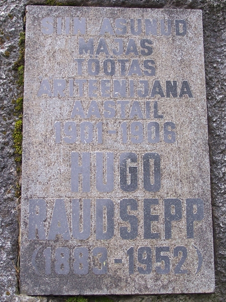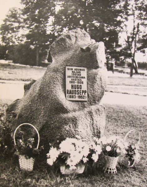 Kirjaniku 100. sünniaastapäeva tähistamise raames avati mälestuskivi 7. augustil 1983 kohas, kus kunagi asus kauplus, milles Hugo Raudsepp töötas äriteenijana.