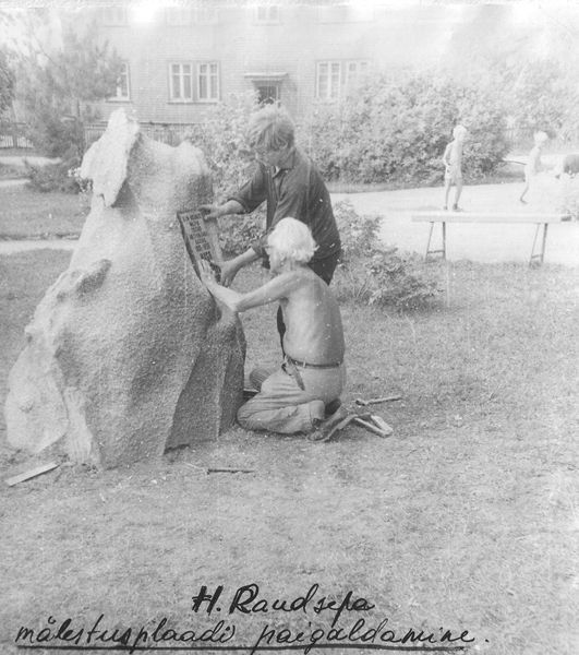 Kivile tahvli paigaldamine. Rakke muuseum.