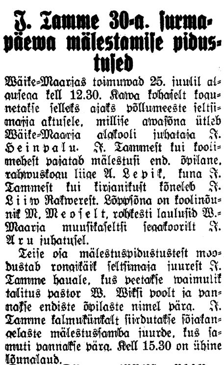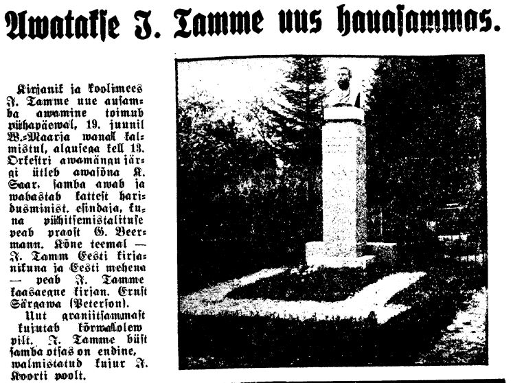 Uue alussamba tegemise mõtted saavad kinnitust Tamme 30nenda surma-aastapäeva tähistamise üritusel pühapäeval, 25. juulil 1937 (vt artiklid eespool):
