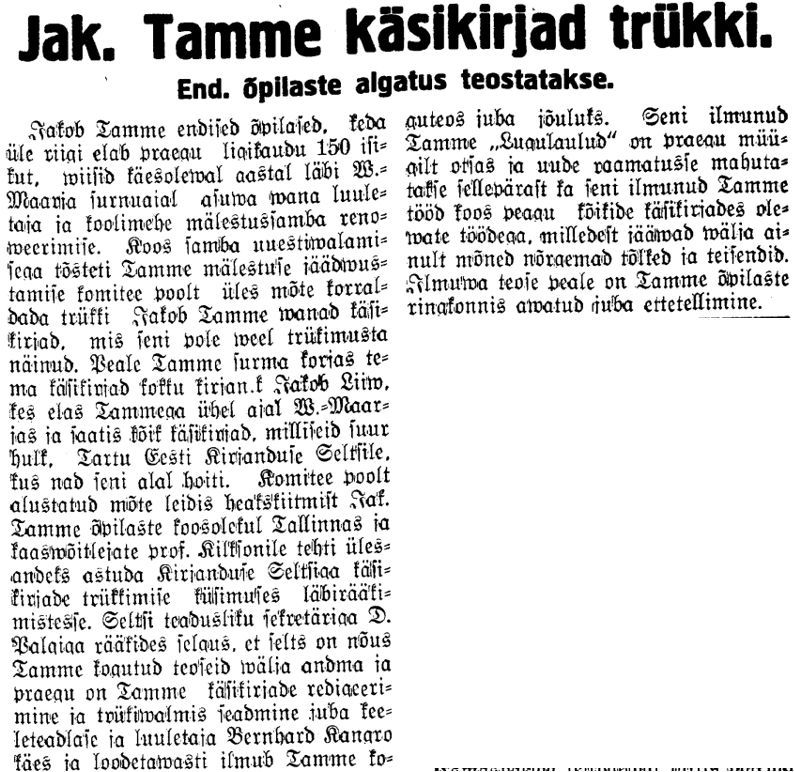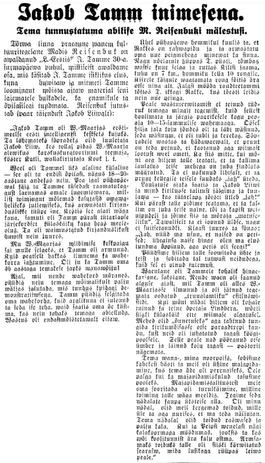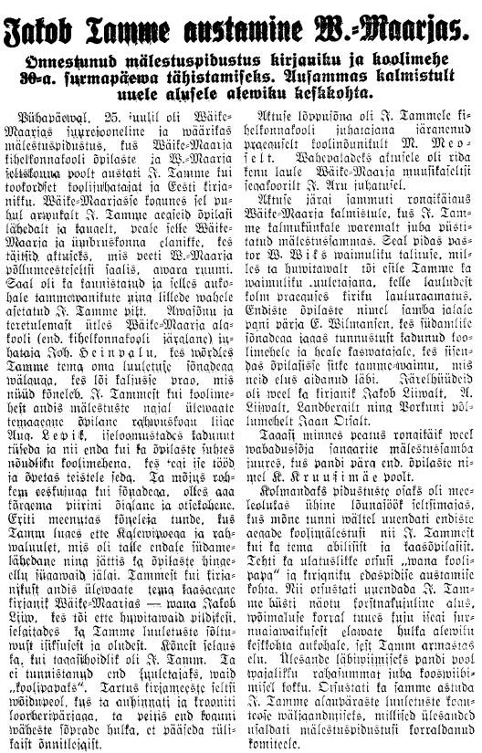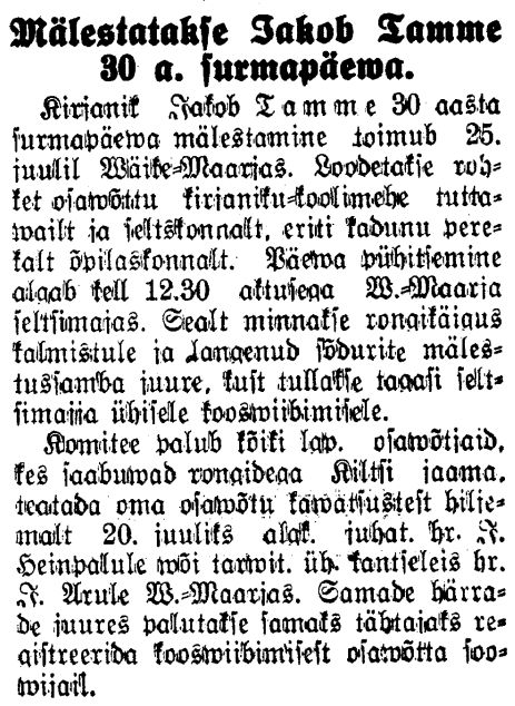 - Pikem lugu Jakob Tammest on ka ajalehes "Kuulutaja" 29.08.2014.