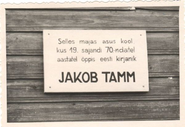 Jakob Tamme memoriaaltahvel endise Kirepi kooli seinal. Foto: Kirt Kaljola. TaM F 105:2, Tartumaa Muuseum, http://www.muis.ee/museaalview/1527416.
