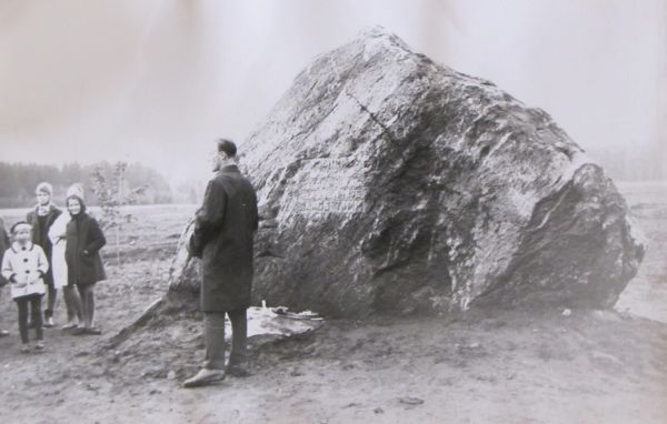 Mälestuskivi avamine endise Rõngu kihelkonnas, Teedla mõisa Topsi talu maadel, 1.10.1967. Foto: K. Kõrge. Eesti Kirjandusmuuseumi kogu.