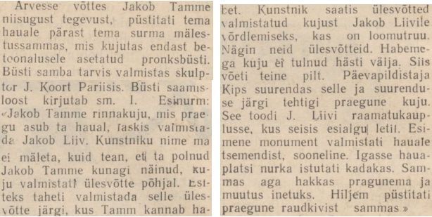Mitmed artikli tutvustasid Jakob Tamme tema 30. surma-aastapäeva: