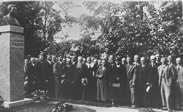 Väike-Maarja kihelkonnakooli 50. juubeli tähistamine, Jakob Tamme monumendi uue aluse avamine. Eesti Kirjandusmuuseumi kogu.
