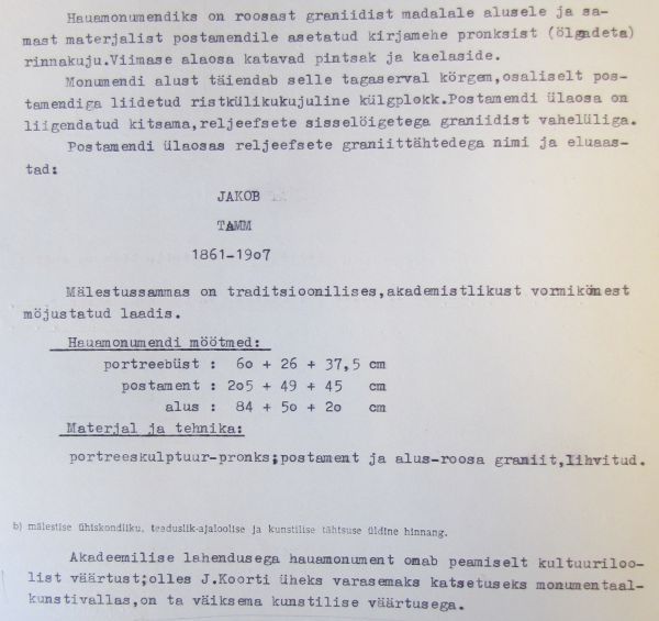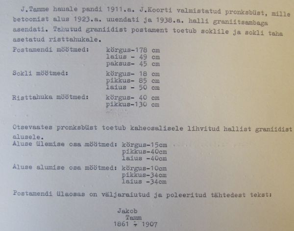 Hauamonumendi pass. Muinsuskaitseameti arhiiv.