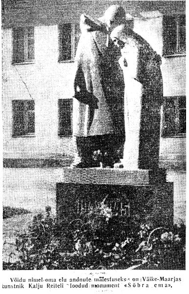 - Skulptuurilt eemaldasid katte Boris Gorbunov, rajooninõukogu täitevkomitee esimees Mihkel Sistok ja aseesimees Paul Randroo.