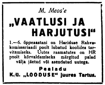- 10.03.1966 - pedagoogi ja kultuurielu edendaja nekroloog. Lühidalt meenutatakse Märt Meose elulugu ja olulisemaid saavutusi.