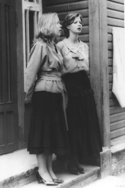 Mälestustahvli avamisel laulavad Enely Raave ja Sille Hurt. Väike-Maarja muuseumi kogu.