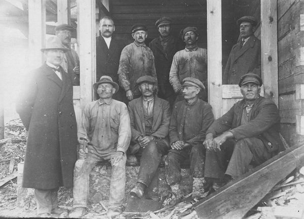Märt Meos koos ehitustöölistega. Väike-Maarja muuseumi kogu.