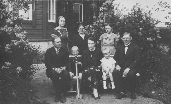 Märt Meos (paremal) oma aias. Kes on teised? Väike-Maarja muuseumi kogu.