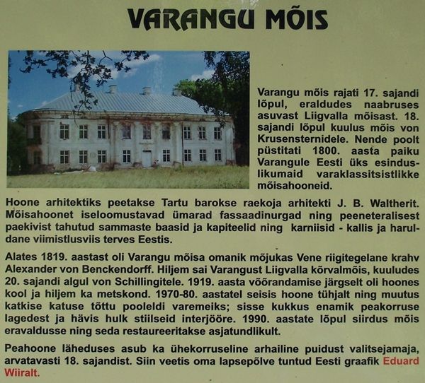 Foto: Kalle Soovik, 1964. Mälestustahvel Varangu mõisa valitsejamajal, RM F 512:42, SA Virumaa Muuseumid, http://www.muis.ee/museaalview/1794541. Kas aastaarv on vale, tahvel avati 1965?