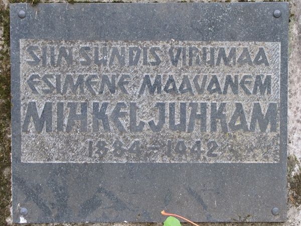Mihkel Juhkam (4.08.1894 - 28.01.1942) oli Viru maakonnavalitsuse esimees aastatel 1917-1921 ja 1922-1923. Tema elust on juttu näiteks http://et.wikipedia.org/wiki/Mihkel_Juhkam ja ka ajalehes "Virumaa Teataja" 25.08.1999, 24.07.2007 (veebiversioonis http://virumaateataja.postimees.ee/2304675/ateistist-maavanem-mihkel-juhkam-asutas-rakveres-erakonna) või 8.01.2008 (põhjalik ülevaade 1917. aasta sündmustestest Rakveres ja tulevase maavanema Juhkami tegevusest sellel ajal).