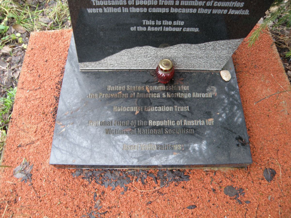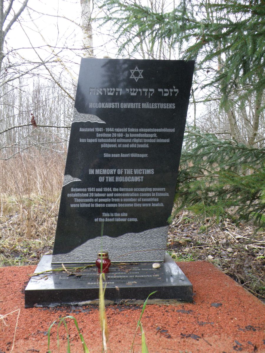 Veedi Penek: "Saksa vangilaager asus Aseri–Arukülas (praegune Aseriaru küla) II MS aastail 1942-1944. Laagris olid ja töötasid peamiselt juudisoost vangid, mistõttu tunti seda juudilaagri nime all. Vangid töötasid lähedal asuvas vanas paekarjääris paekivikillustiku tootmisel. Laagri asukohta paigutati mälestuskivi Aseri Külanõukogu. Aseri Keraamikatehase ja vene piirivalve Aseri üksuse poolt 1970. a. Piirivalveüksus hooldas mälestuskivi ja selle ümbrust 1990. aastani."