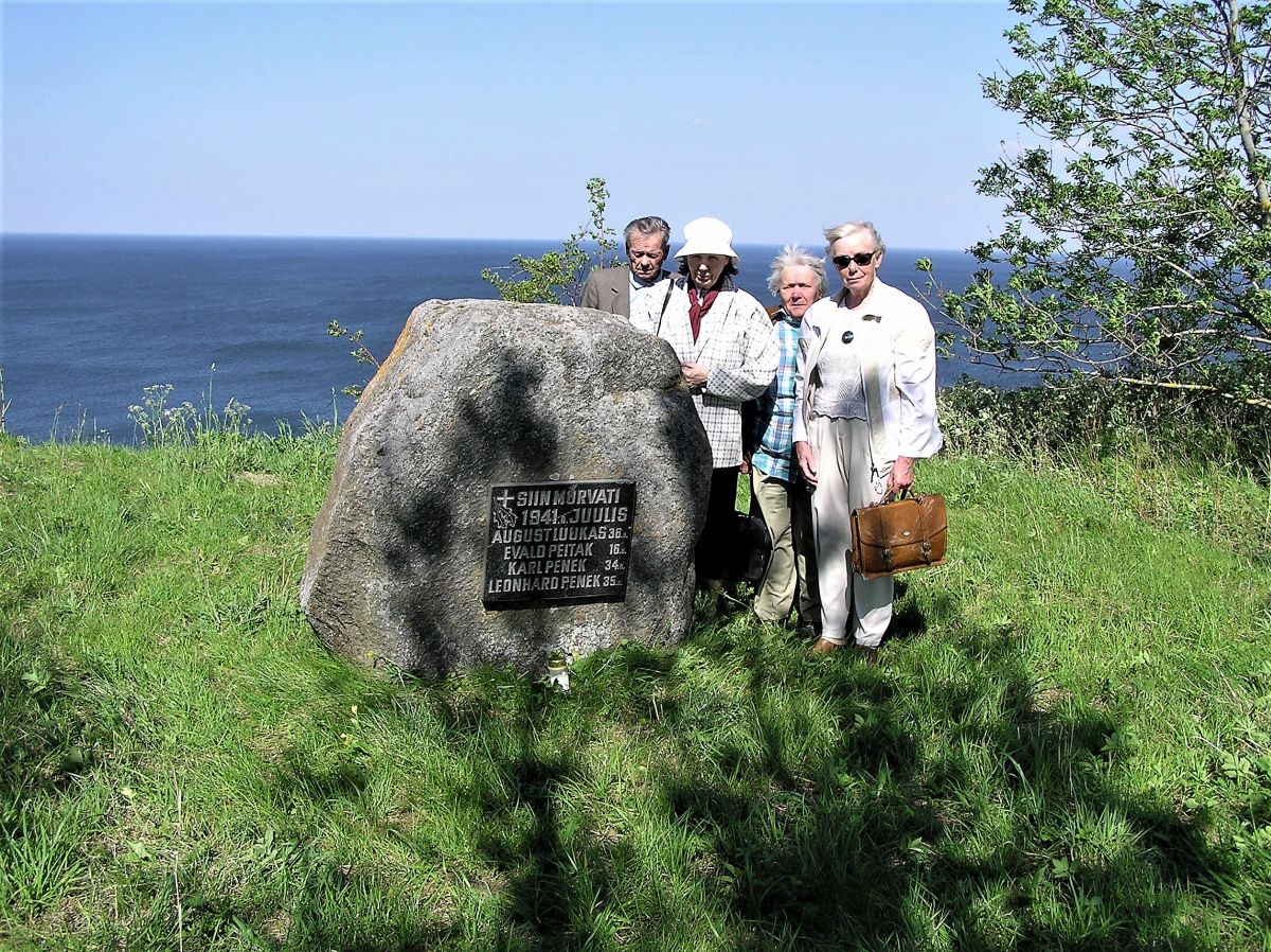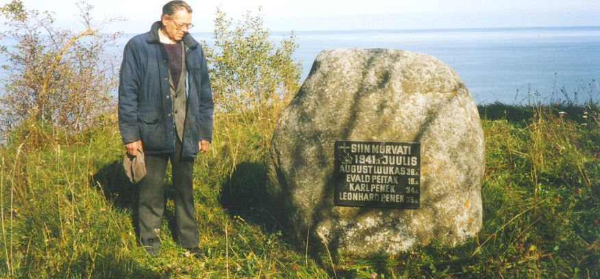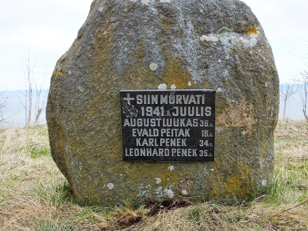 Mälestuskivi paigaldas Veedi Penek 1990. aastal, kelle meenutuste põhjal: 1941. aasta juulis on ärevad ajad. Sakslasi veel ei ole, nõukogude väed taganevad ja on võsast kimbutavate metsavendade pärast närvilised. Neli meest lähevad heina tegema ja õhtul nad tagasi ei tule. Külas nähakse aga ida poole hiilivate nõukogude piirivalvurite salka. Tapetud heinalised leitakse madalast hauast puuokstega kaetuna alles novembris.