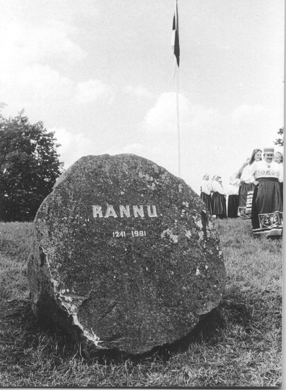 Kivisse on raiutud tekst "Rannu 1241-1991".